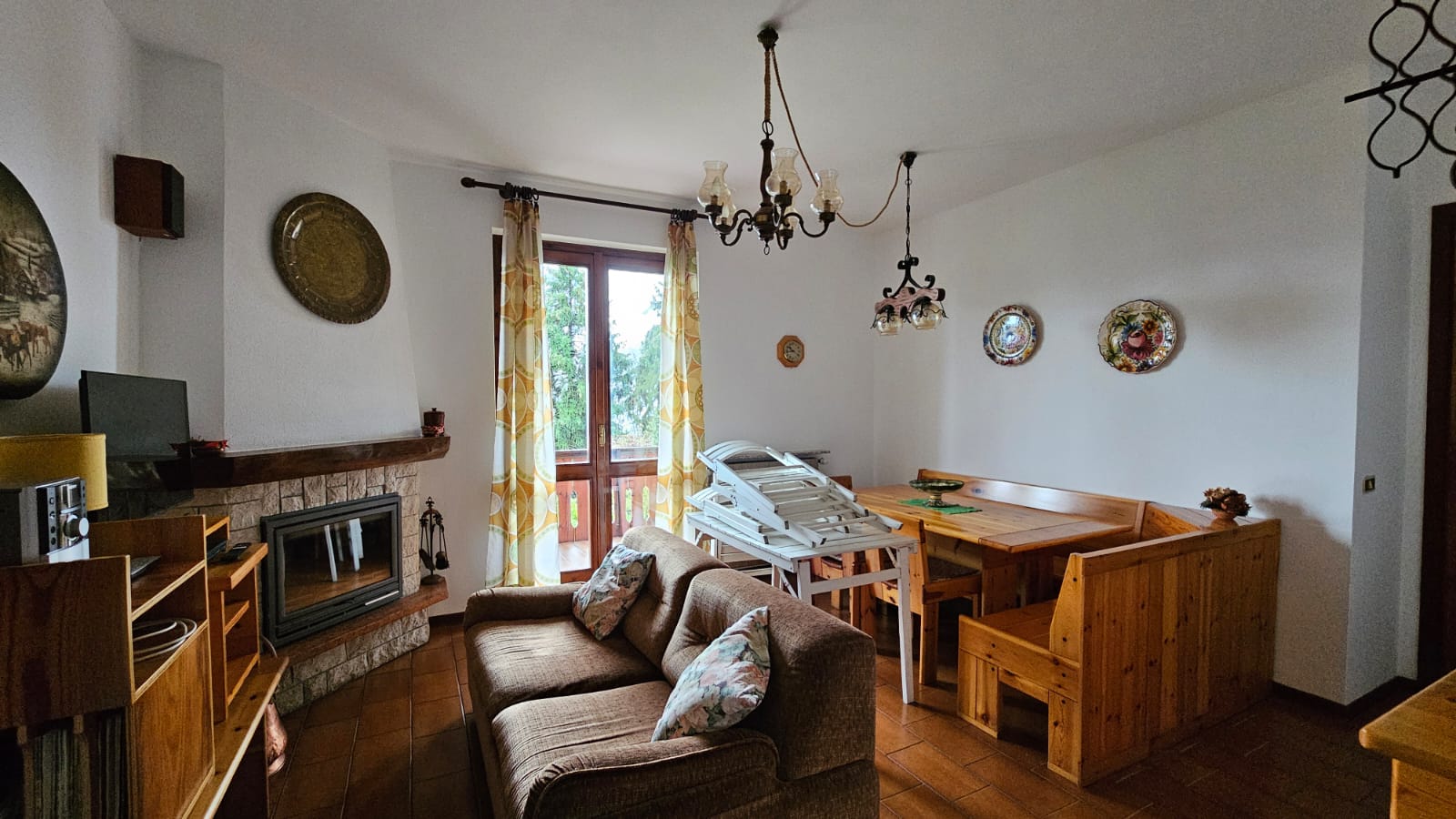 La soluzione, completamente arredata, è attualmente composta da: spazioso soggiorno con camino a legna ventilato, cucina abitabile, terrazza vivibile con ottima esposizione solare e vista panoramica sulle montagne circostanti, camera matrimoniale, seconda camera con letto a castello e bagno.