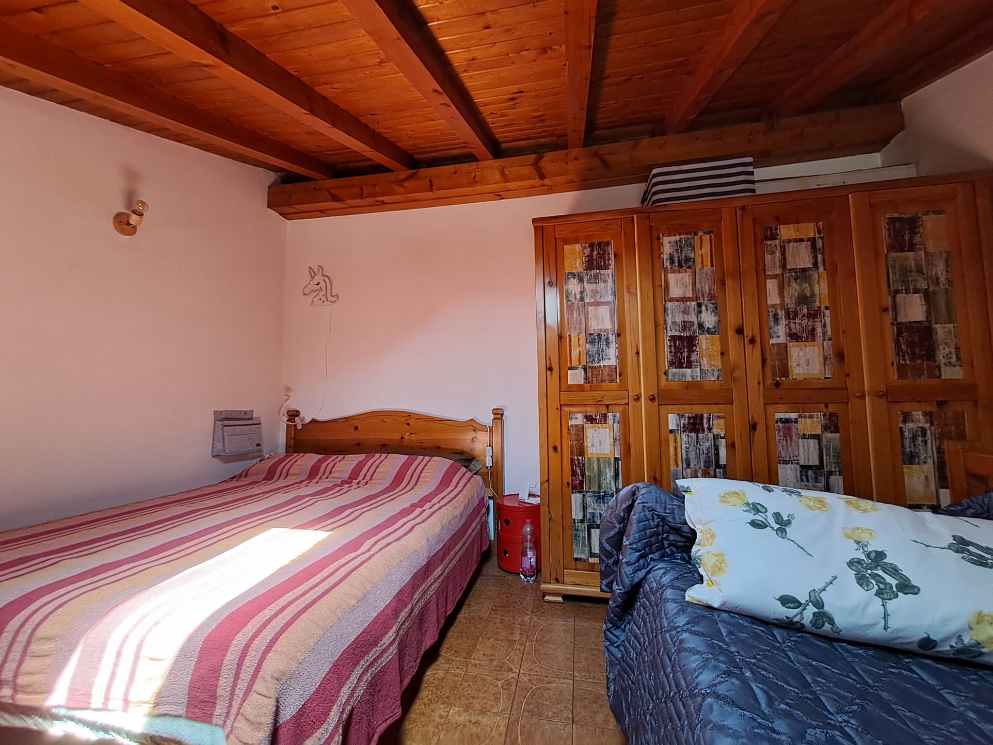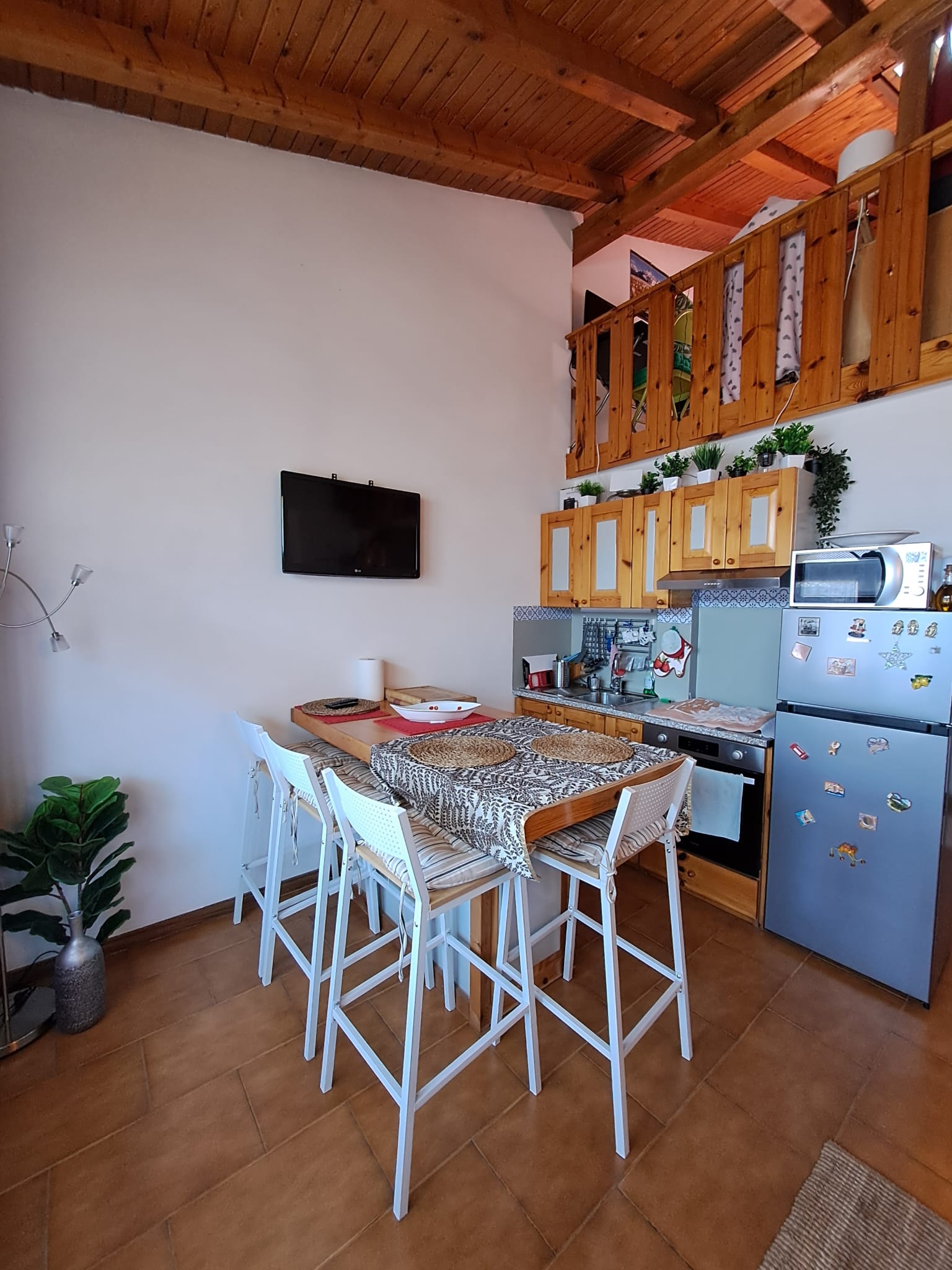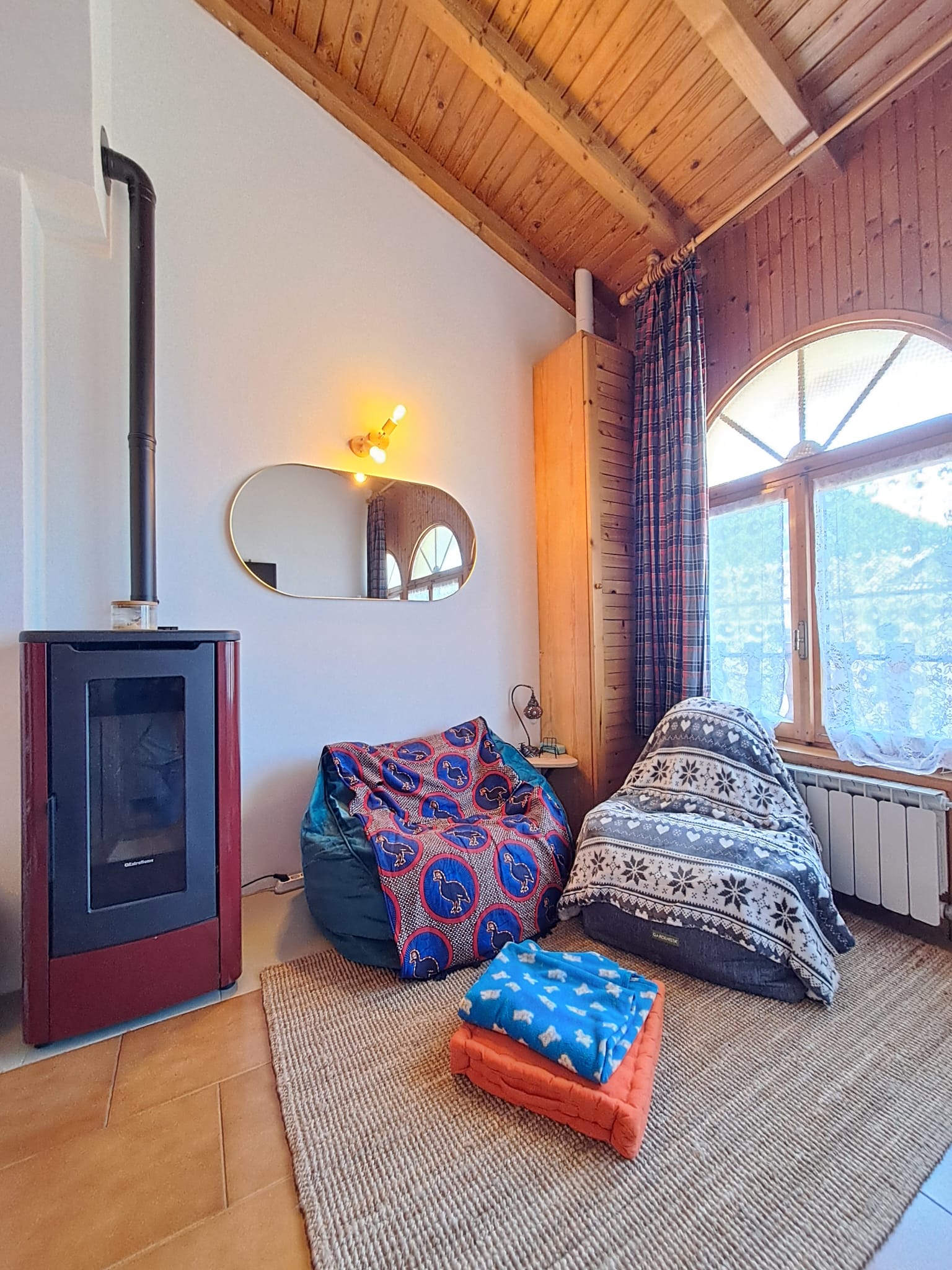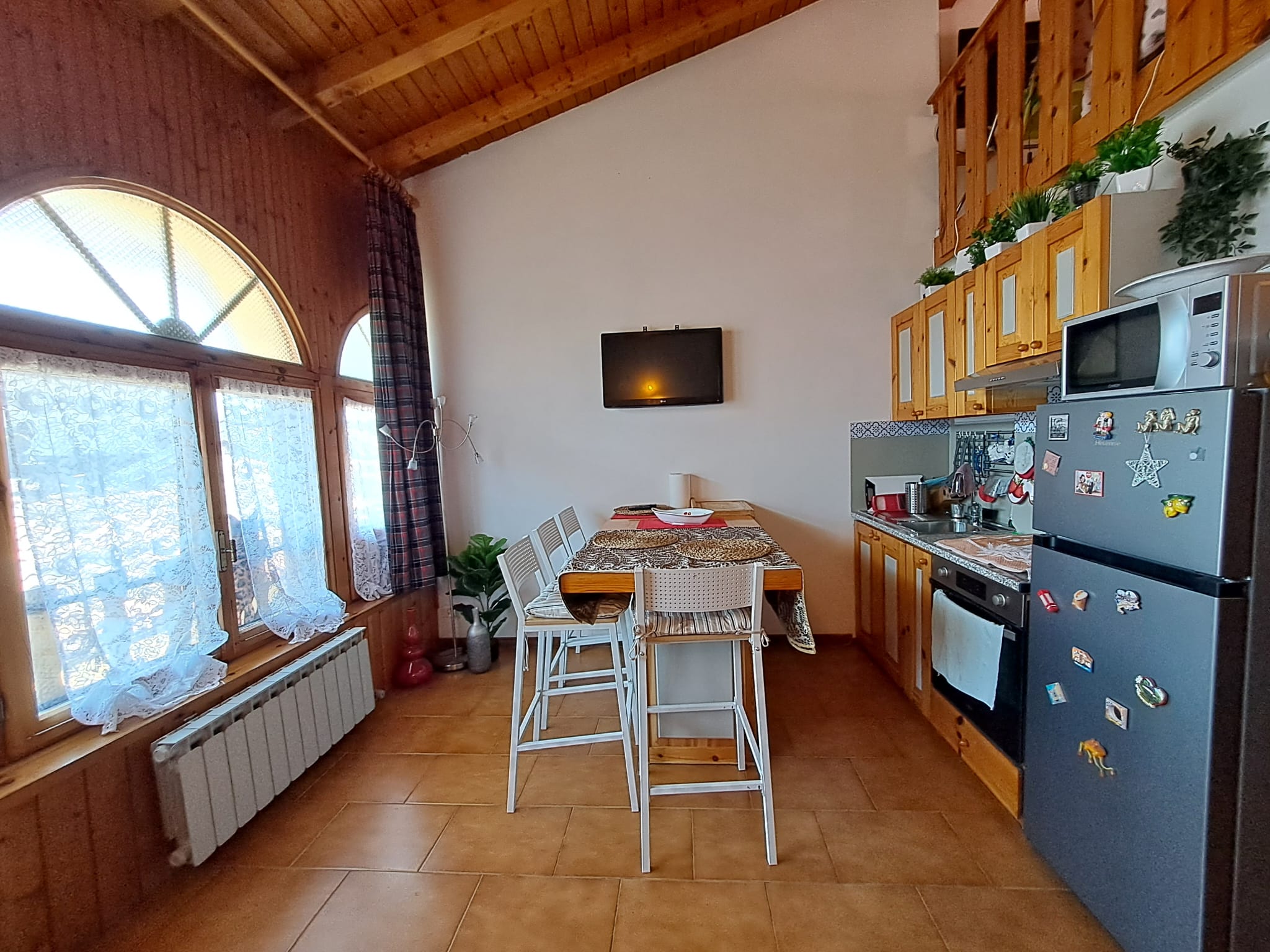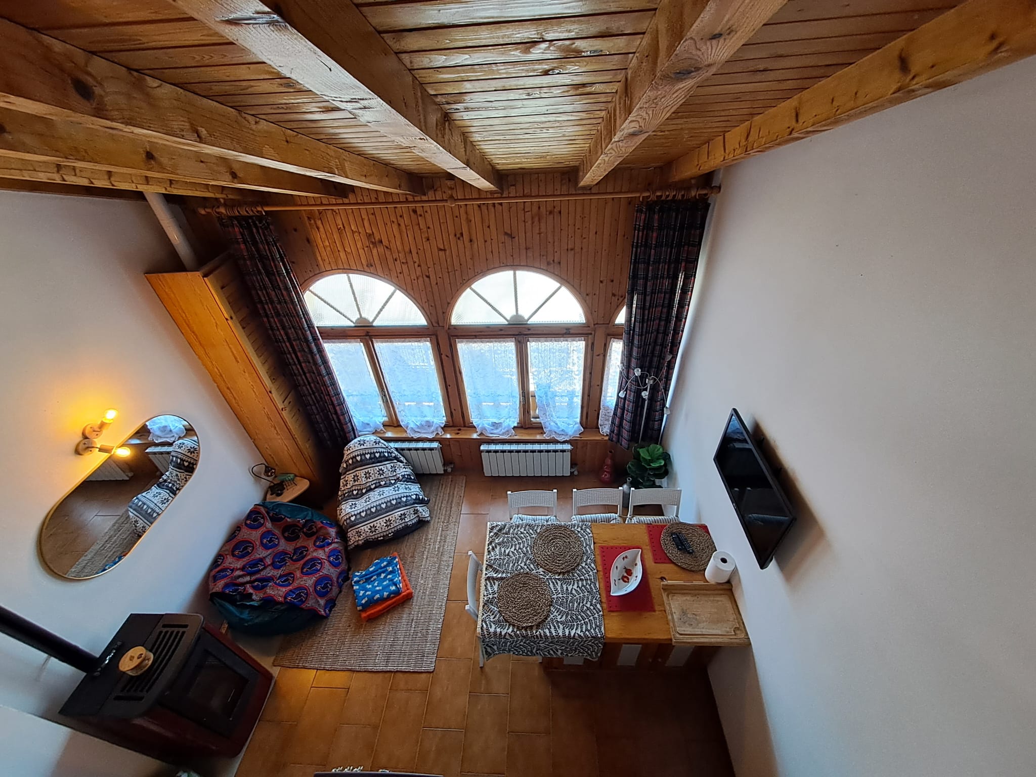 Travi a vista in tutta la soluzione. Riscaldamento autonomo.