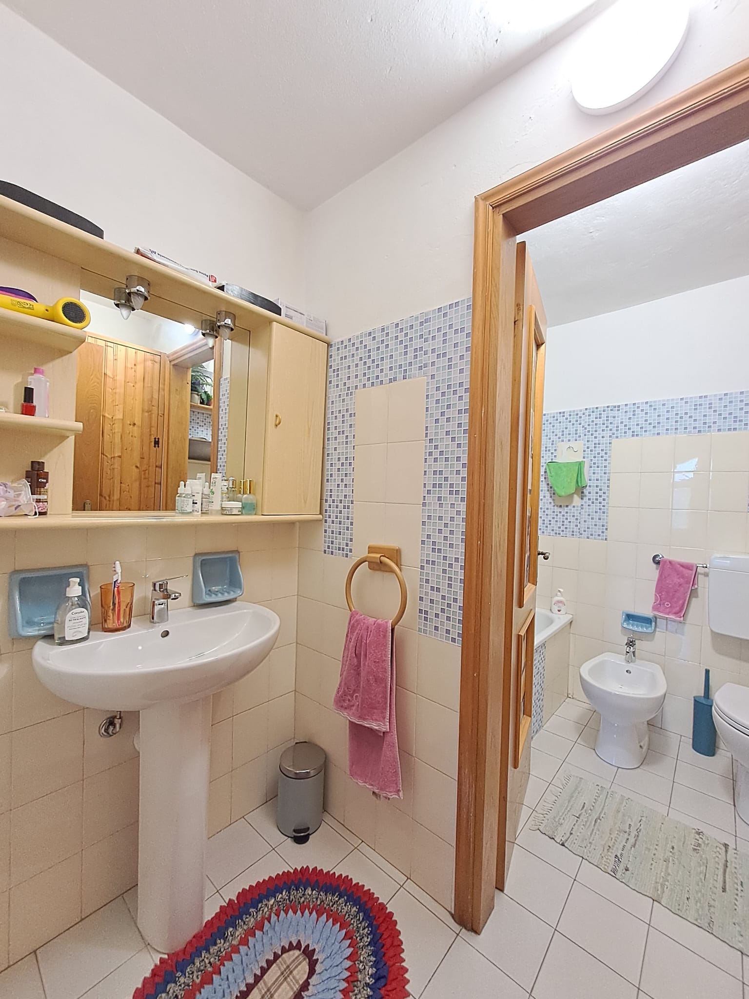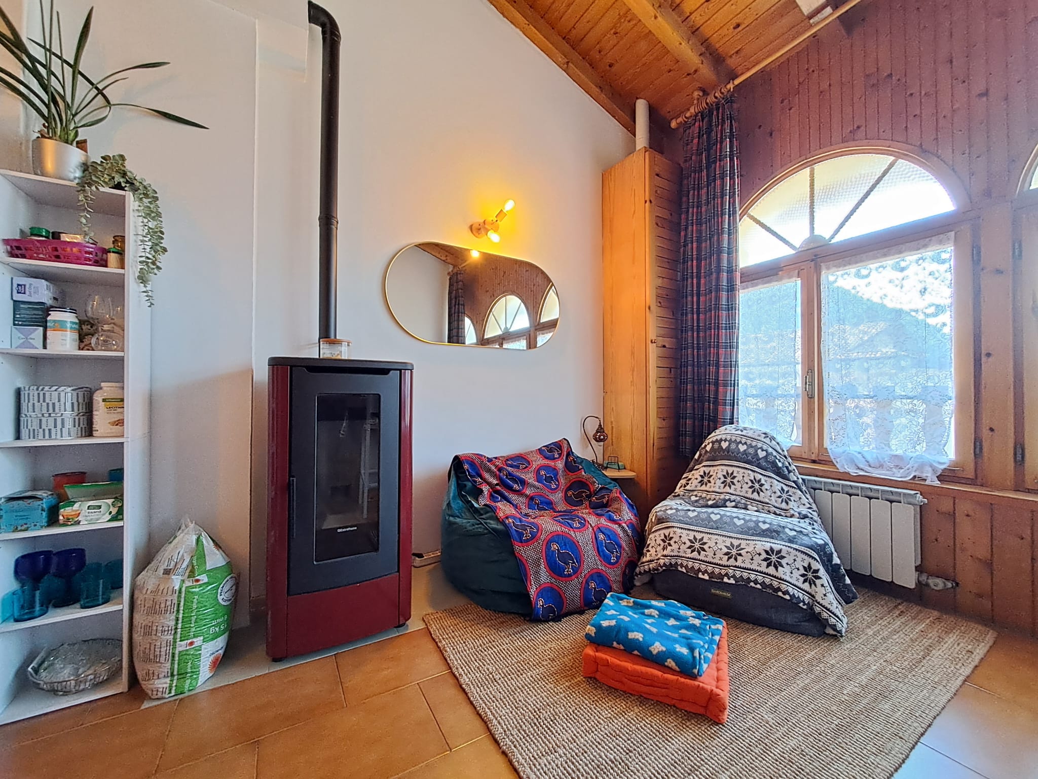 L’appartamento è stato parzialmente ristrutturato con rifacimento impianto elettrico, posa nuova canna fumaria certificata per stufa a pellet e sostituzione sanitari bagno.