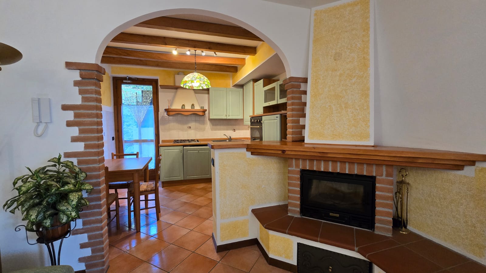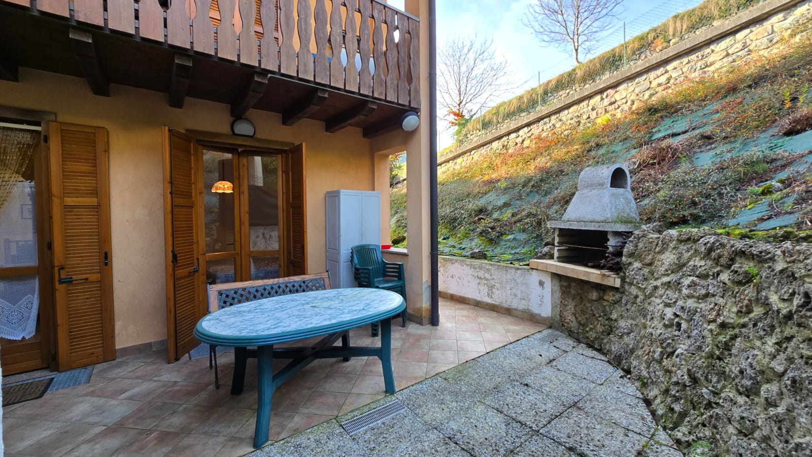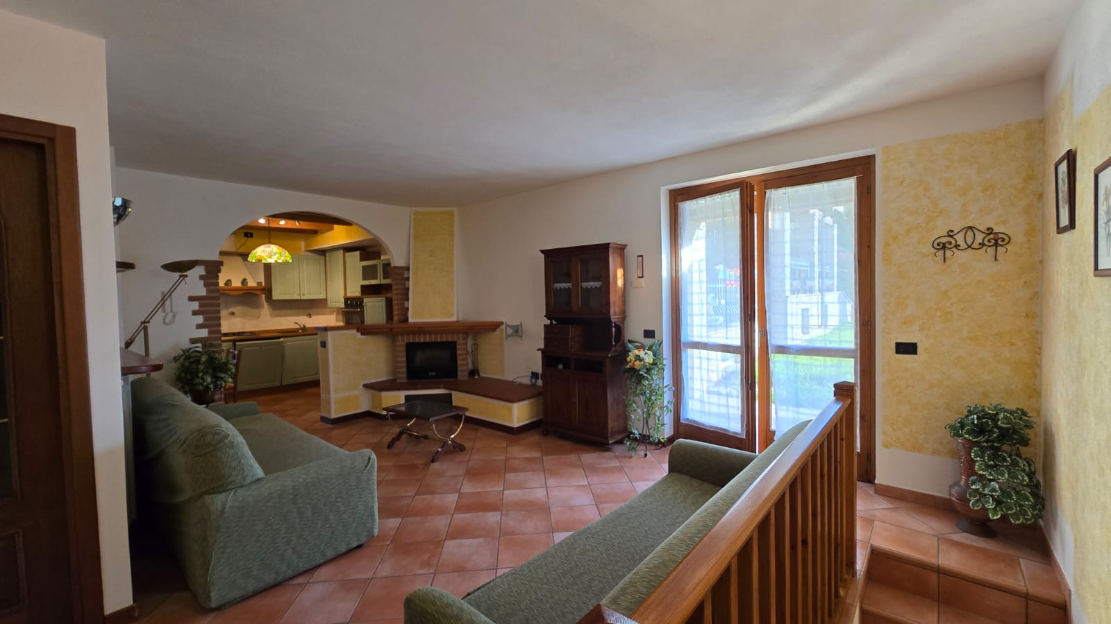 - piano terra luminoso soggiorno con camino a legna, area esterna privata con ottima esposizione solare composta da portico e giardino, cucina abitabile, disimpegno, camera matrimoniale, seconda camera da letto, bagno ed ulteriore area esterna con angolo barbecue, ideale per pranzi all’aperto;