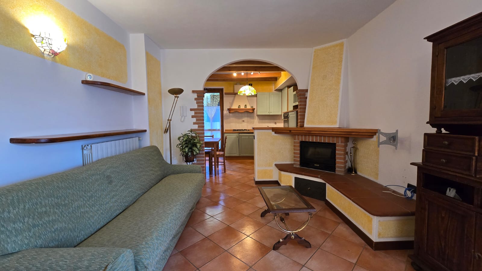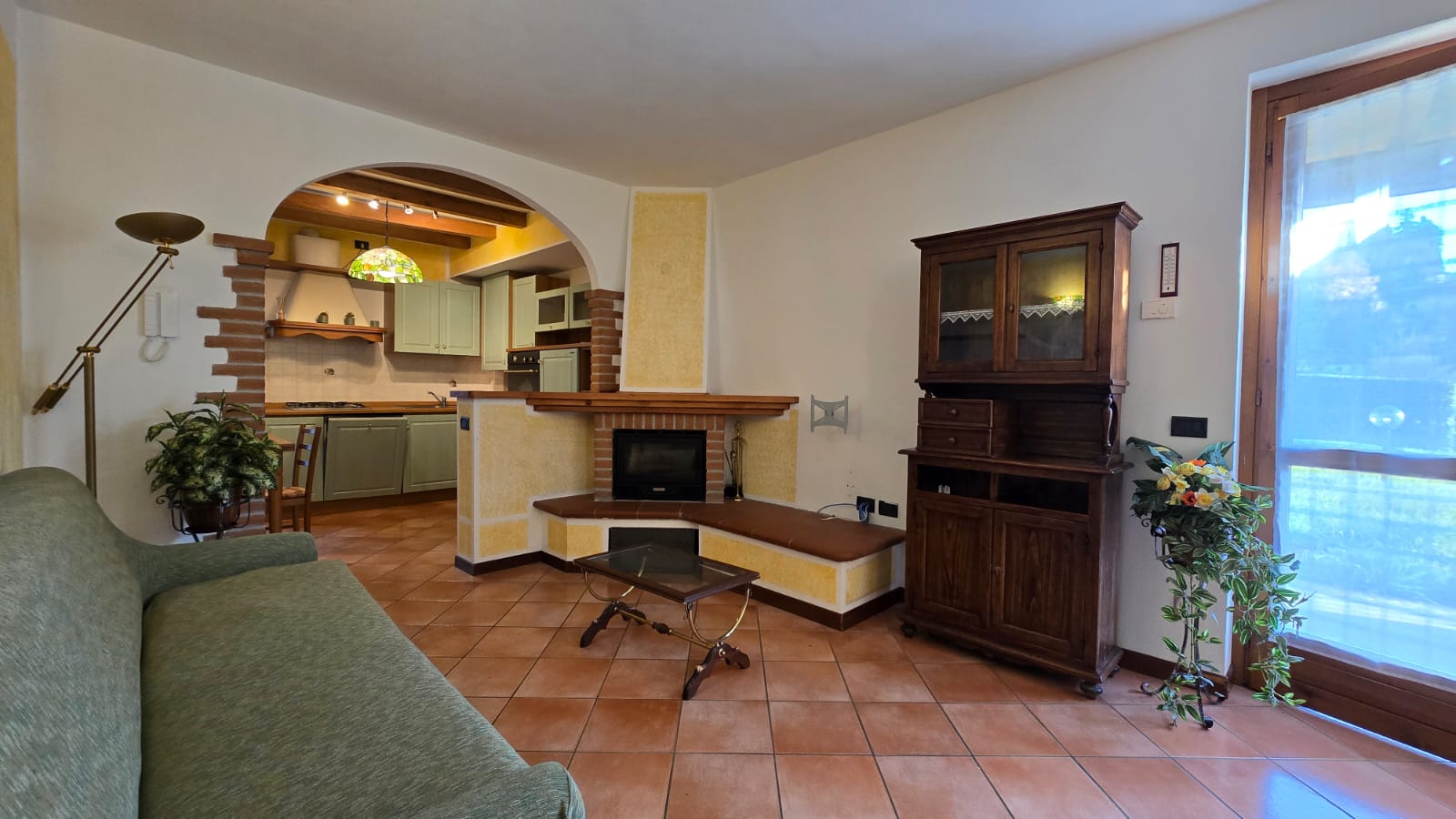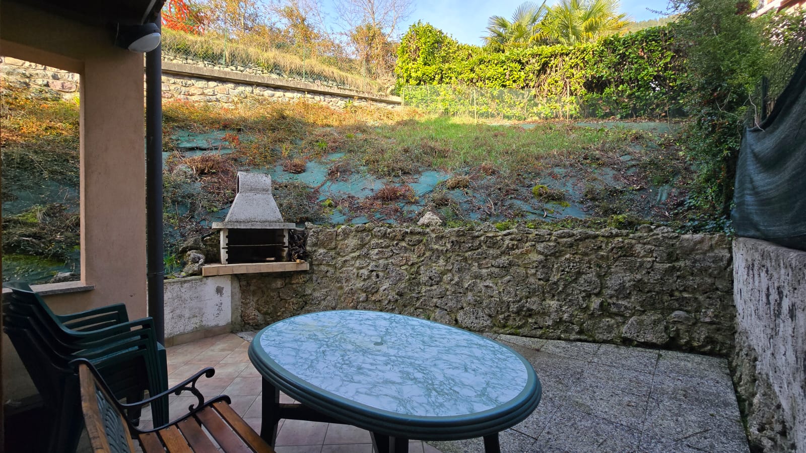 - piano terra luminoso soggiorno con camino a legna, area esterna privata con ottima esposizione solare composta da portico e giardino, cucina abitabile, disimpegno, camera matrimoniale, seconda camera da letto, bagno ed ulteriore area esterna con angolo barbecue, ideale per pranzi all’aperto;