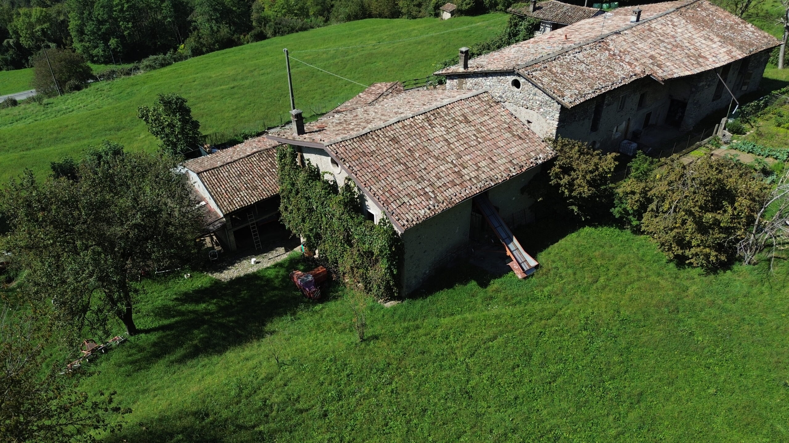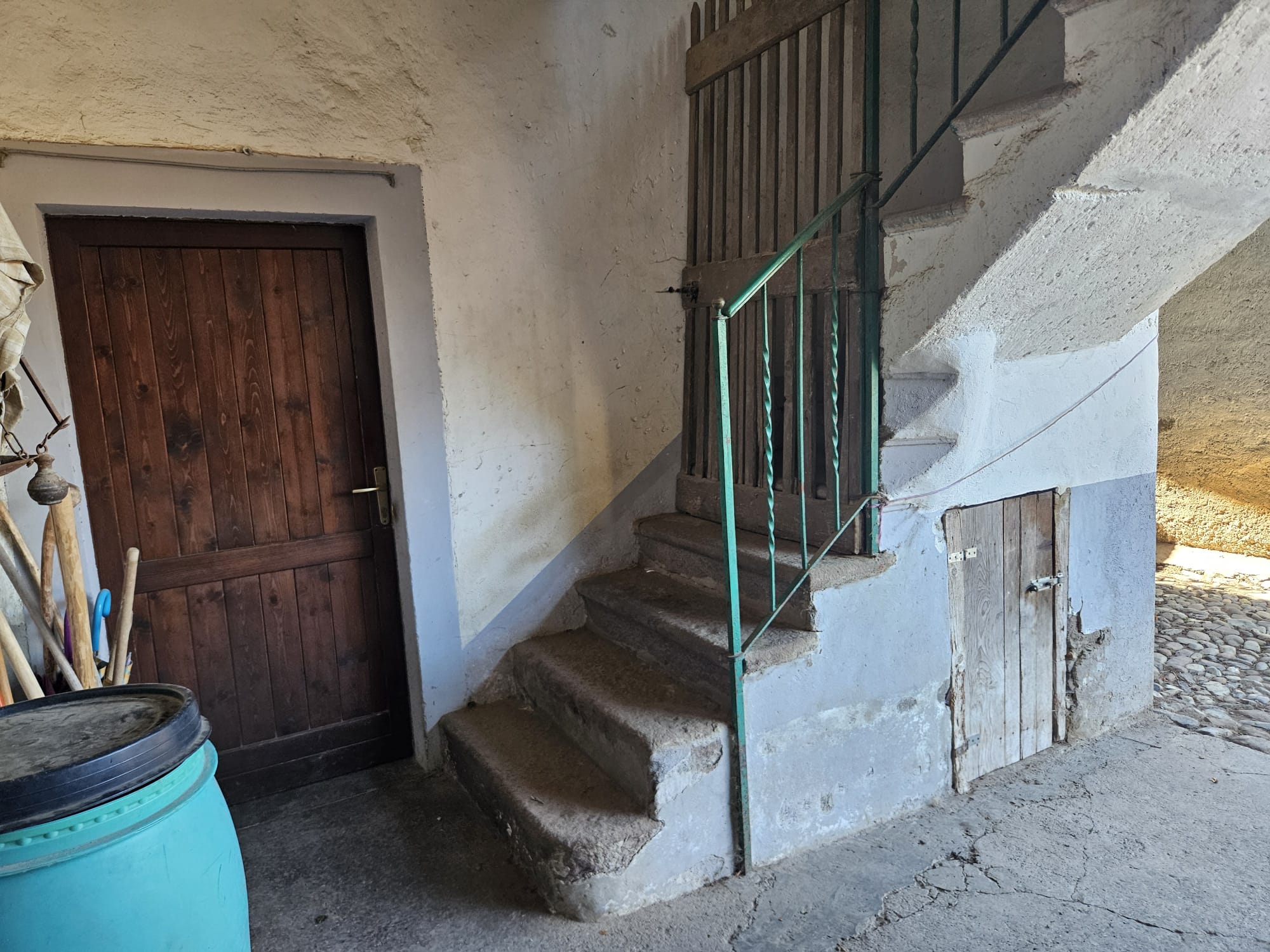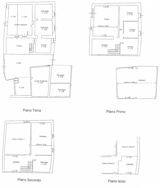 - piano terra tipica corte contadina completamente chiusa con muro di recinzione, portico, cucina con camino, camera, cantina e stalle;
