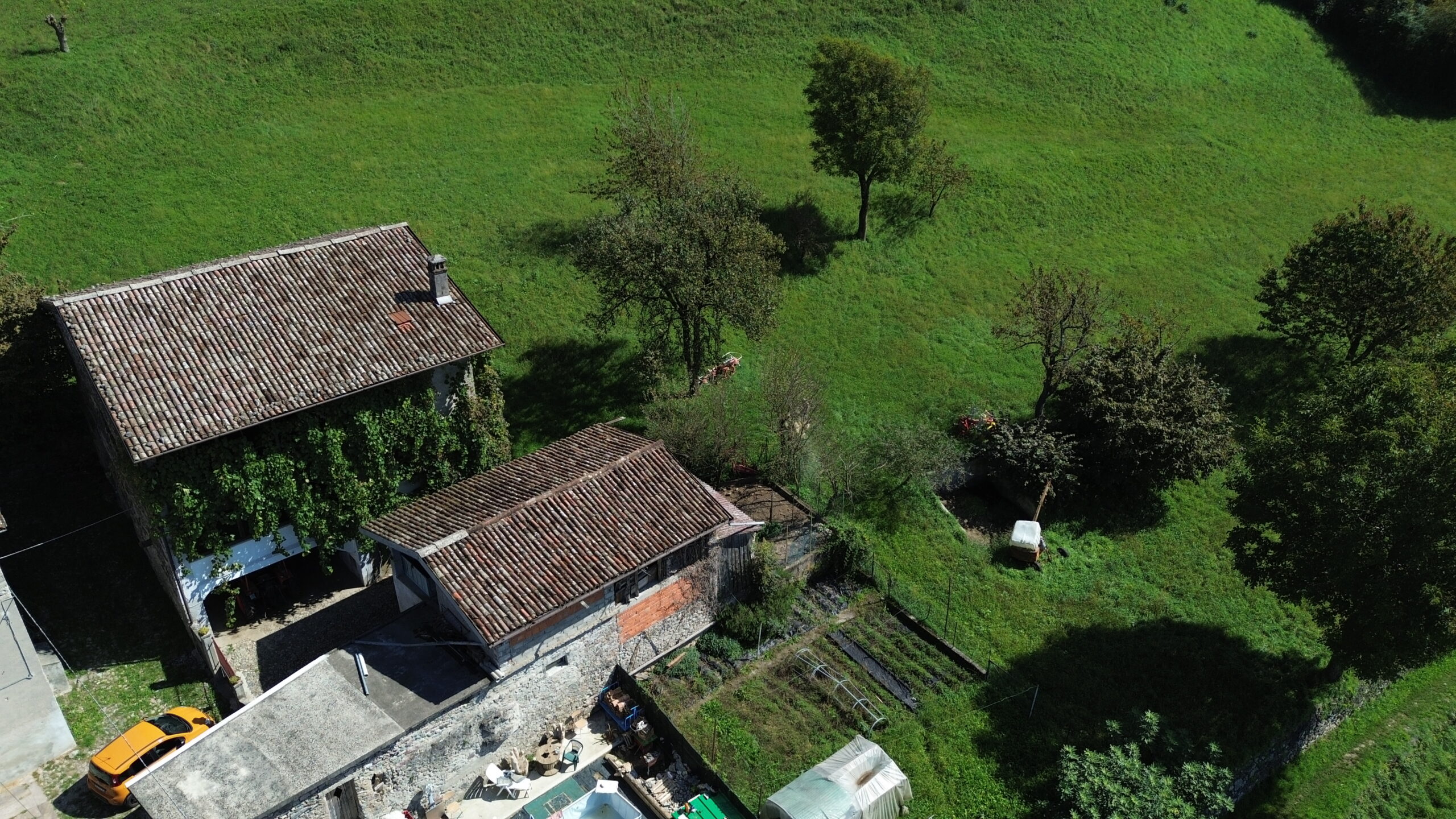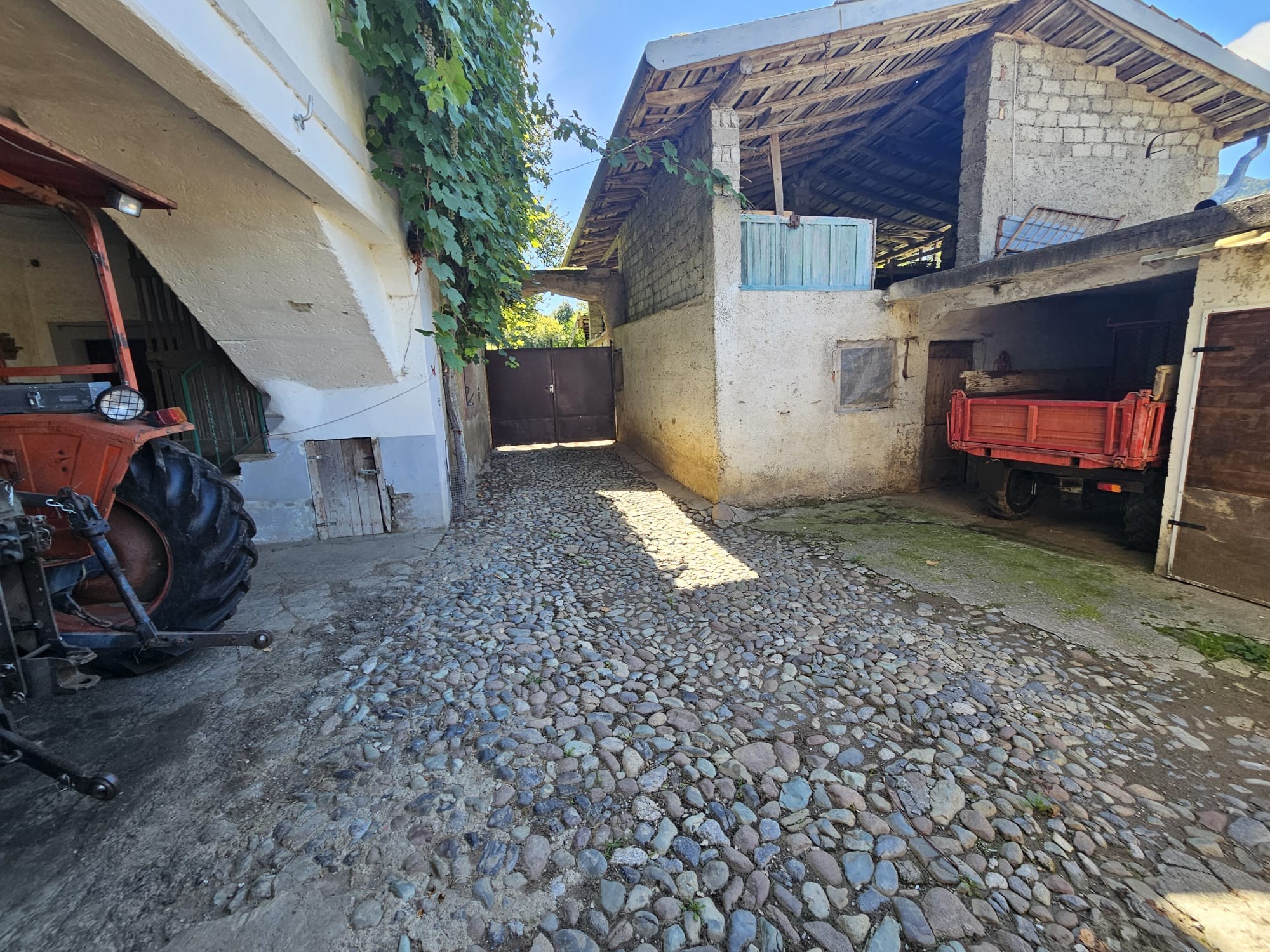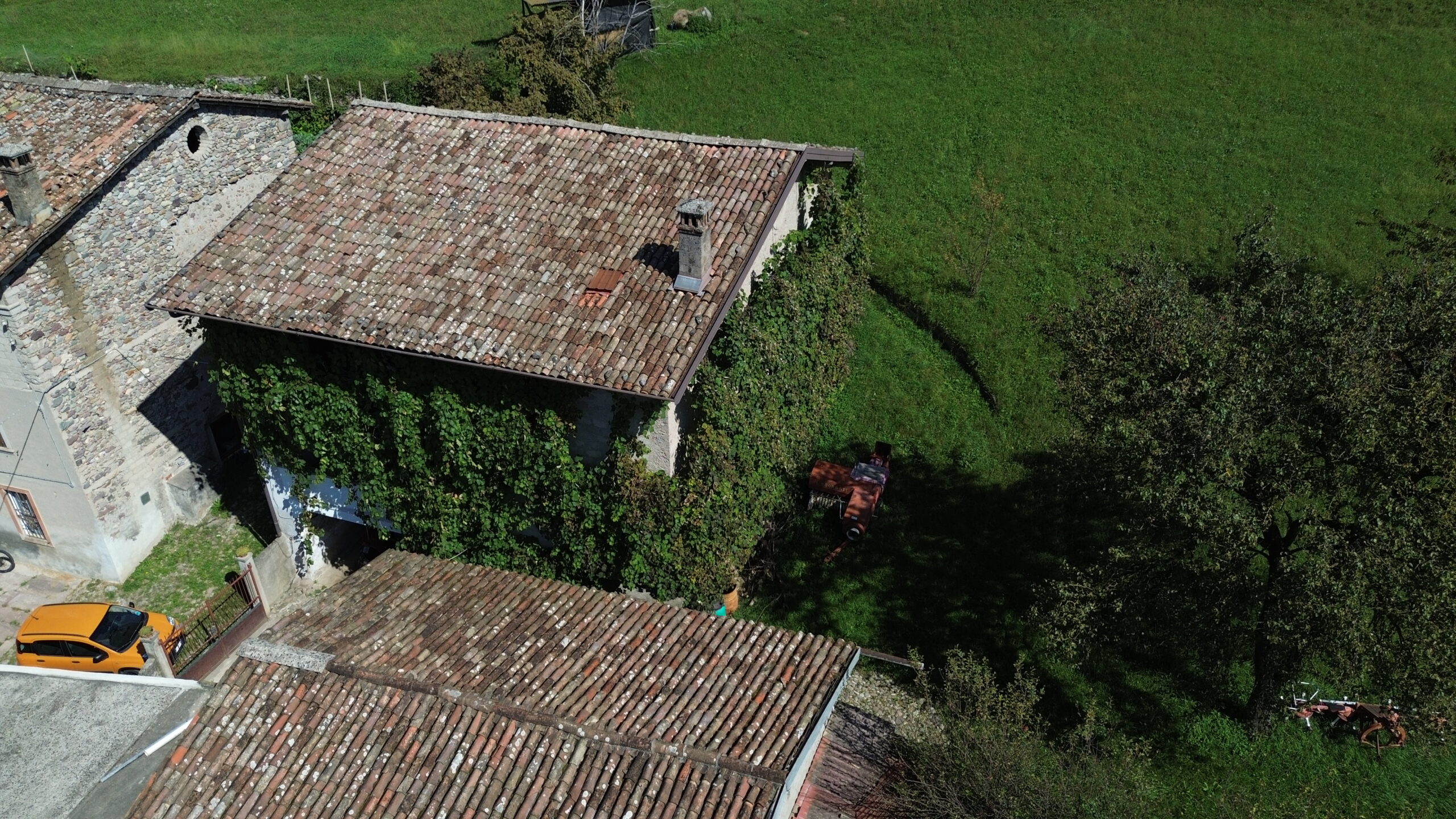 - piano terra tipica corte contadina completamente chiusa con muro di recinzione, portico, cucina con camino, camera, cantina e stalle;