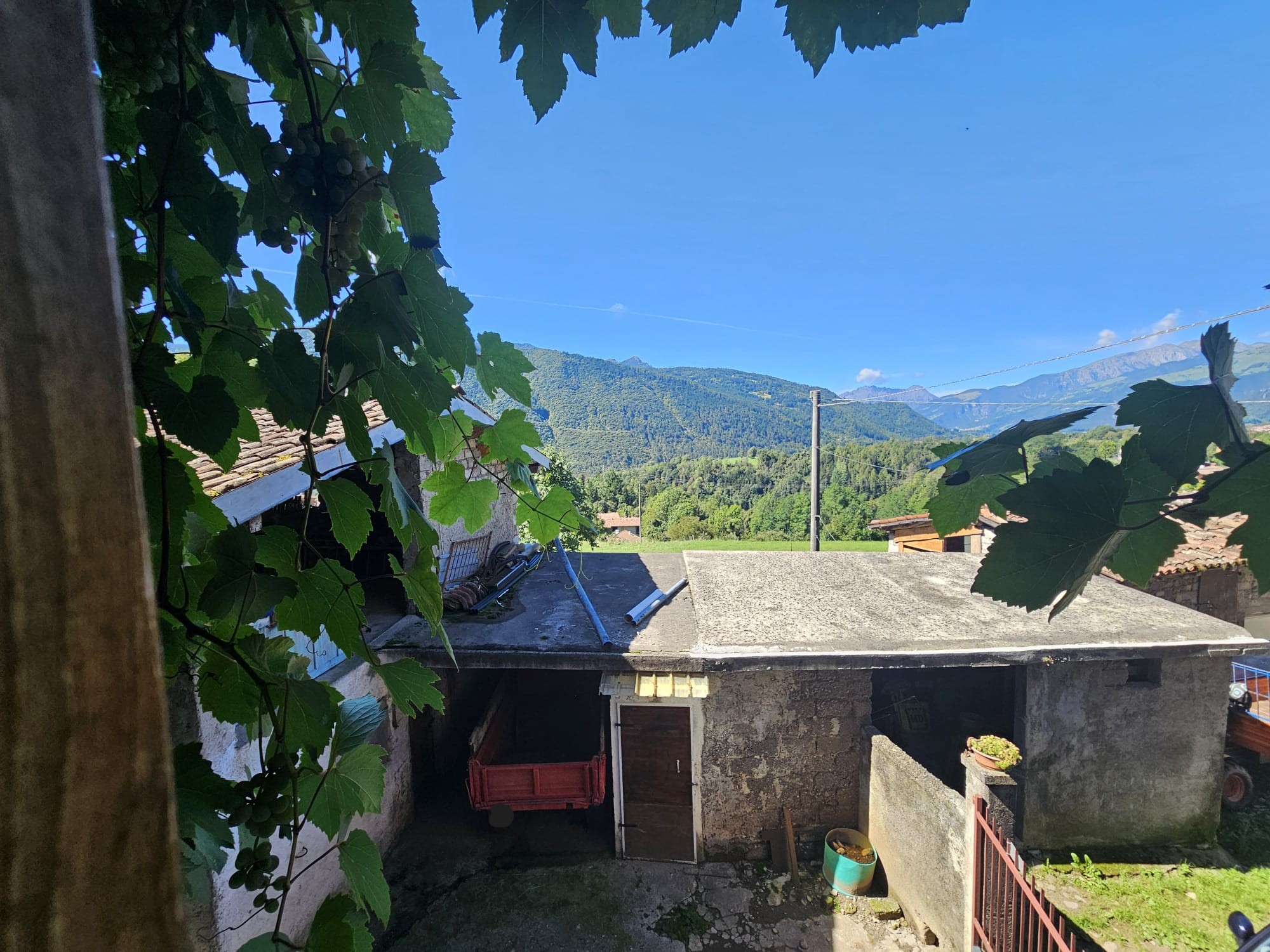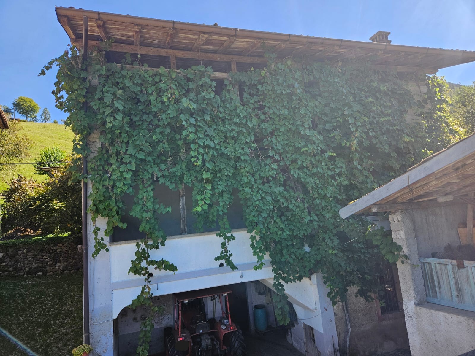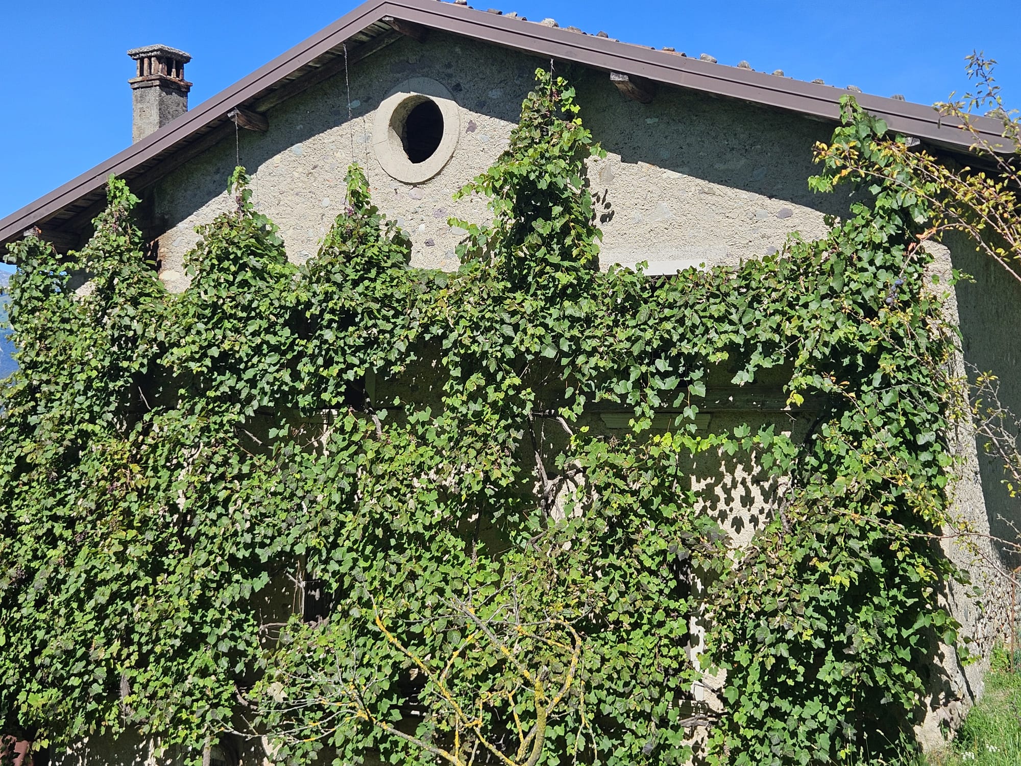 - piano primo ampia loggia/veranda oggi completamente coperta da bellissima uva rampicante, tre camere e fienile;