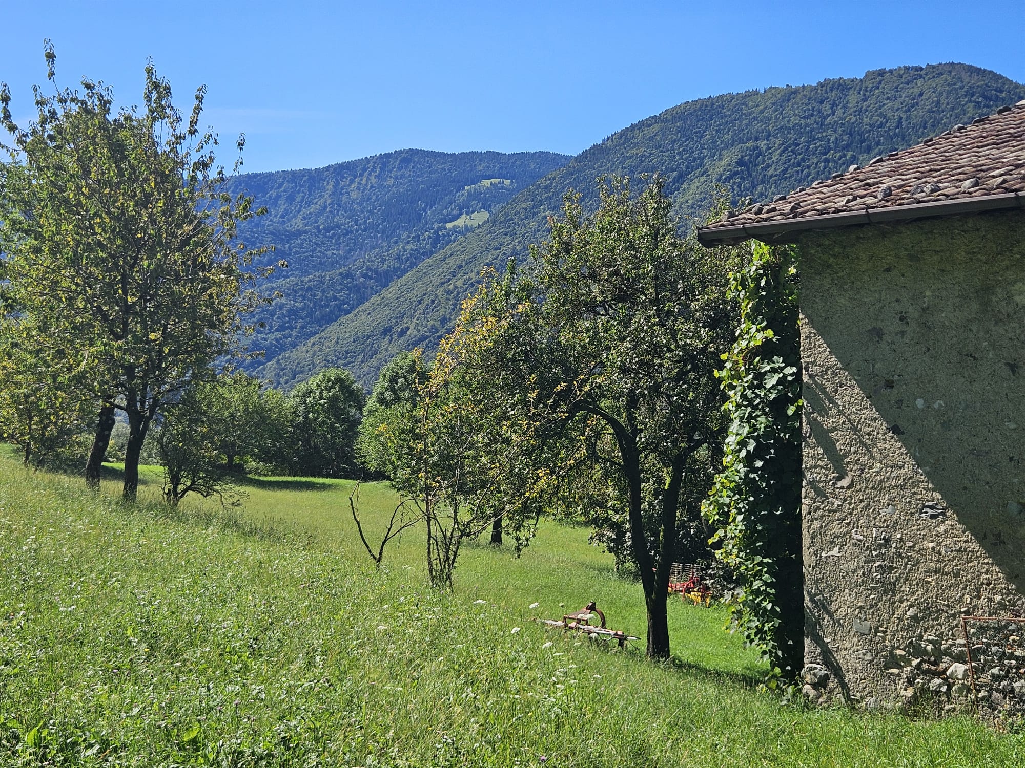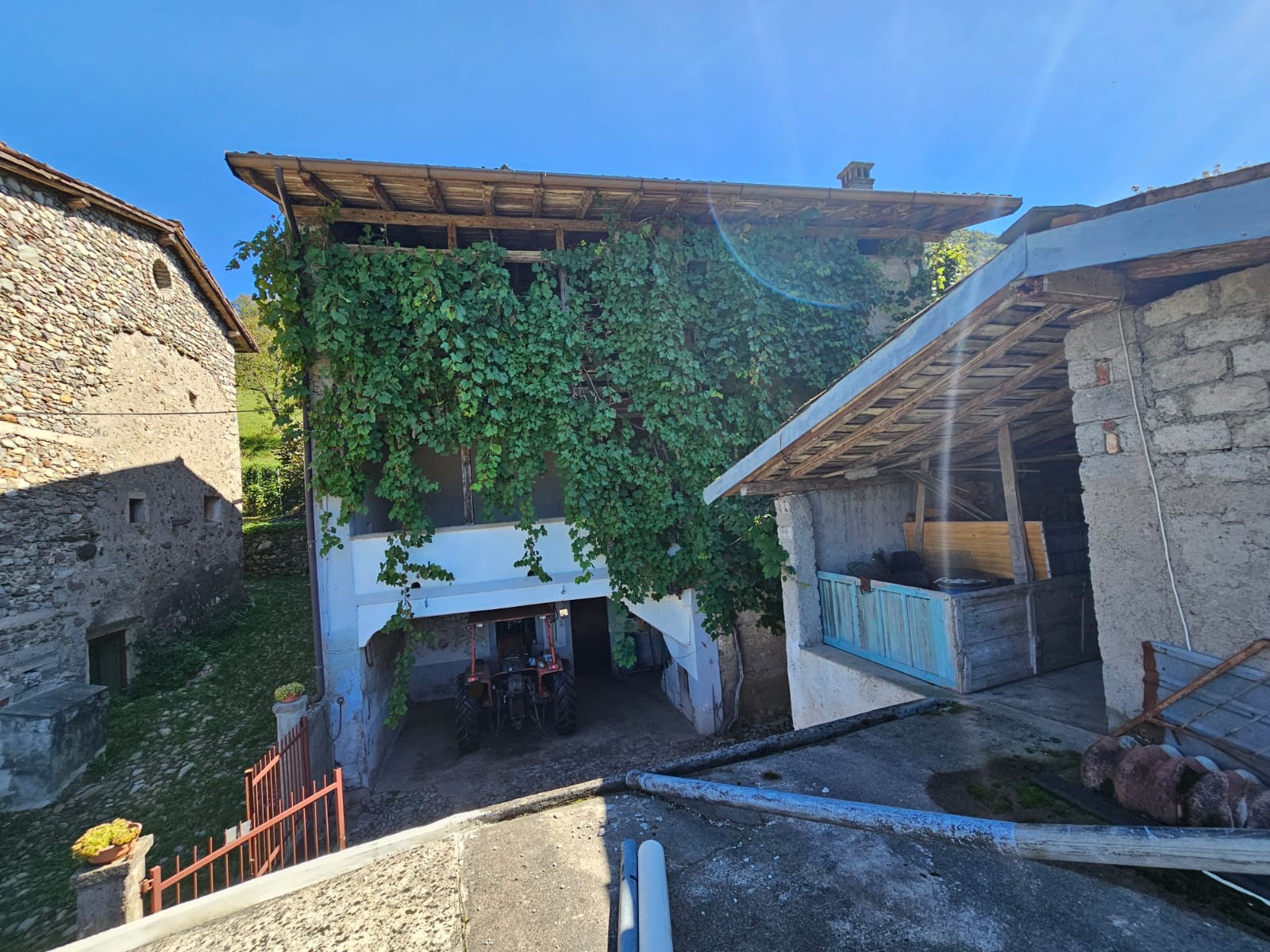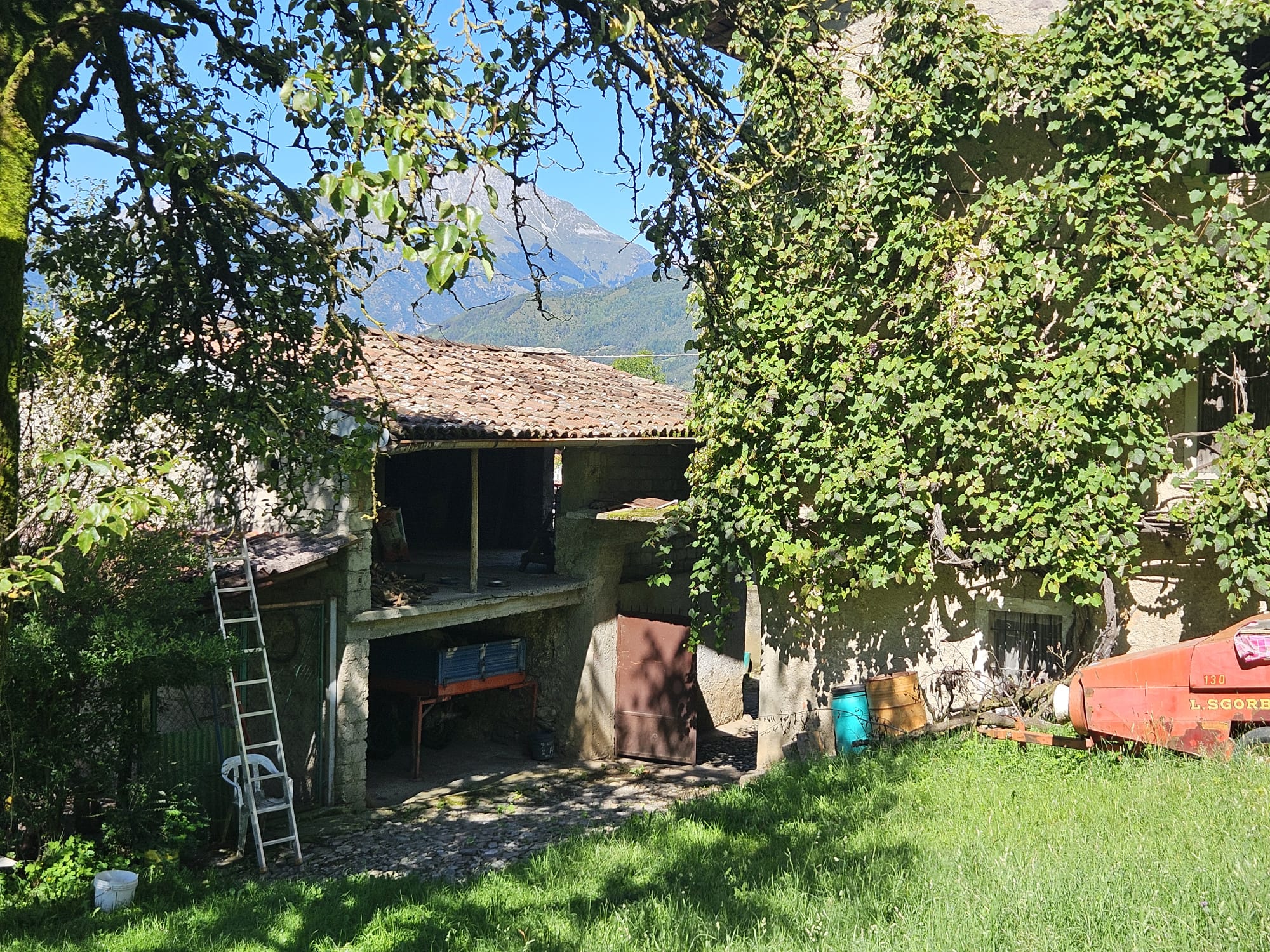 - piano primo ampia loggia/veranda oggi completamente coperta da bellissima uva rampicante, tre camere e fienile;